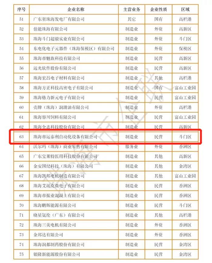 珠海高新技术企业100强